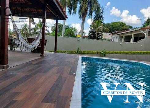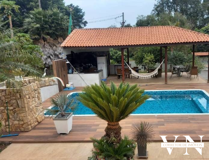 A chácara possui uma bela casa com 4 dormitórios, 2 suítes, varanda, sala de jantar, sala de estar, cozinha com balcão americano e móveis planejados, banheiros, área de serviço, área de churrasqueira com forno de pizza, banheiro, piscina com cascata, jardim e árvores frutíferas. portão eletronico.
